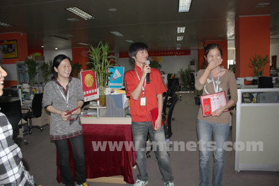 5月全體員工大會中,技術部董小釵獲得創新模范獎。自進公司以來董小釵一直工作出色,大膽創新,在程序模塊的研制上提出眾多建設
