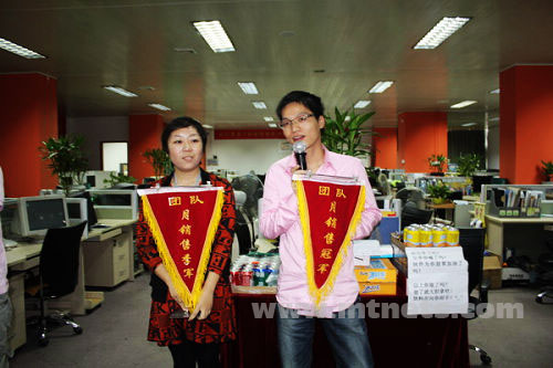 曹 林、虞巧巧、吳貴松、胡蓮華、沈凱凱五位銷售精英獲得明通公司09年7月個人業(yè)績獎,其中前三名被授予流動錦旗。