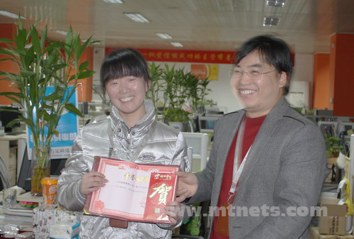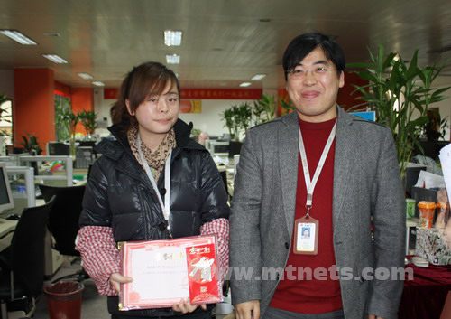 客服部楊云努力工作、認真負責(zé),獲得公司2009年度十二月份優(yōu)秀客服獎