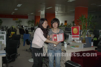 5月全體員工大會中,技術(shù)部董小釵獲得創(chuàng)新模范獎。自進公司以來董小釵一直工作出色,大膽創(chuàng)新,在程序模塊的研制上提出眾多建設(shè)性的思路,并予以執(zhí)行,善于挑戰(zhàn)高難度技術(shù)工作。