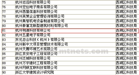 政府網站鏈接: 2009年第四批杭州市高新技術企業認定公示