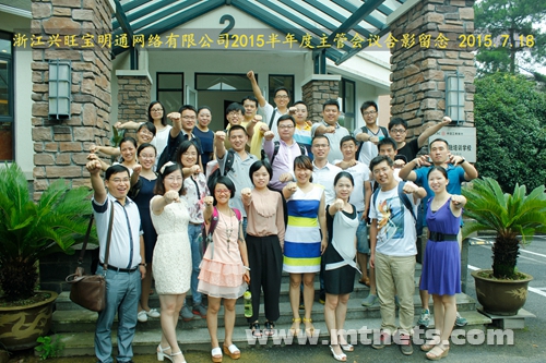 7月18日,浙江興旺寶明通網絡有限公司2015年上半年度主管會議在桐廬銀苑山莊順利召開??偨浝黻悇倜鞯?8名企業高管匯聚一堂,共同探討企業發展的新形勢、新未來。