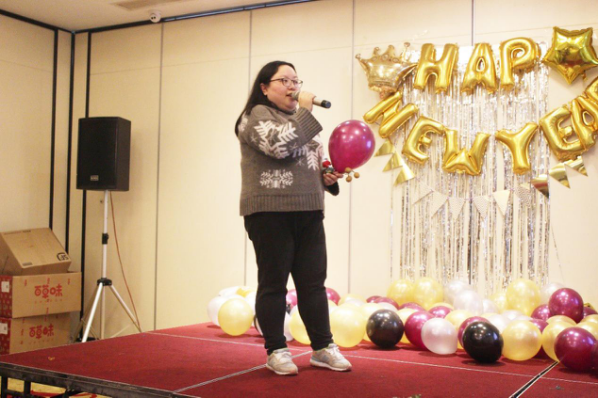 隨后,明通乒乓球比賽亞軍黃麗梅帶來了歌曲《房間》,充分證明了什么才是真正的文體兩開花。