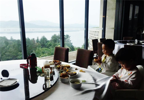 美食+美景,小朋友已經乖乖坐在窗邊享用早餐了